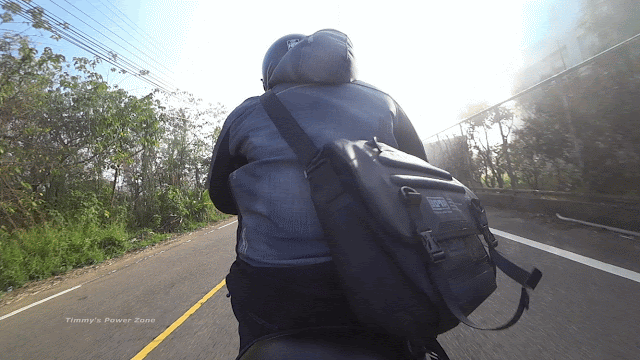 ↓PX-7 Sport多了前面提到的輔助固定繩,非常有用!在速度稍快的狀況下、或是行駛到不平的路面,背包勢必會飄、會晃,間接影響騎乘的注意力;一般雙肩背包沒有這個問題,但是單肩背包只要包體稍微大一點,很容易就有這個狀況。輔助固定繩完美的解決了這問題。