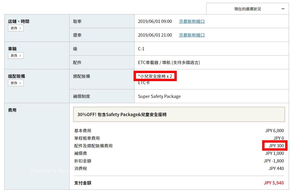 ↓運氣很好,當時租車有促銷,租2張增高墊只要300日幣(台幣不到$100啊)還送ETC免租金,整台小車一天租起來只要日幣5,940(台幣$1,700不到),用指定信用卡還有打折哩。