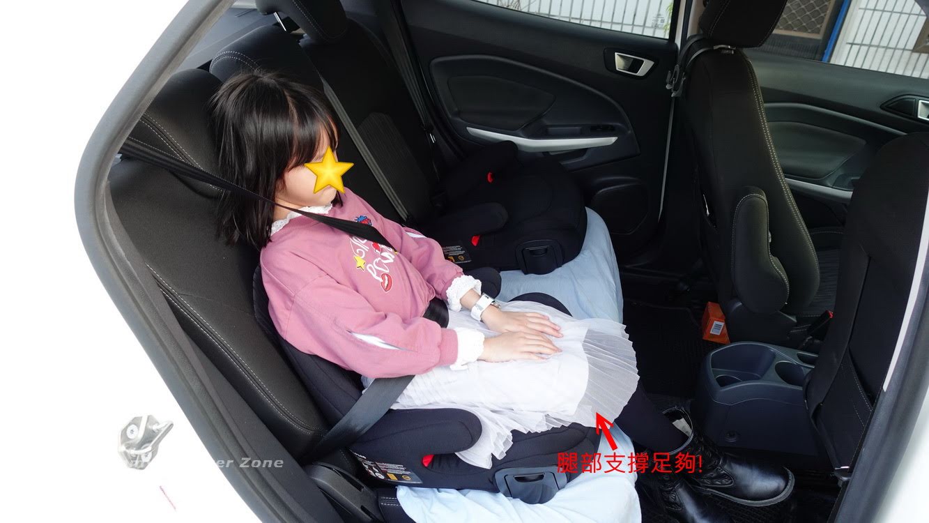 ↓好坐到可以翹腳當貴婦的概念,照片也可以看到有增高墊才能讓小孩有比較適合的高度繫安全帶