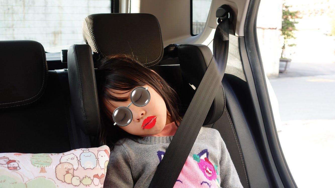 ↓然後最後就會變成這樣....因為增高墊沒有像一般汽車座椅那樣還有頭枕可以靠啊...