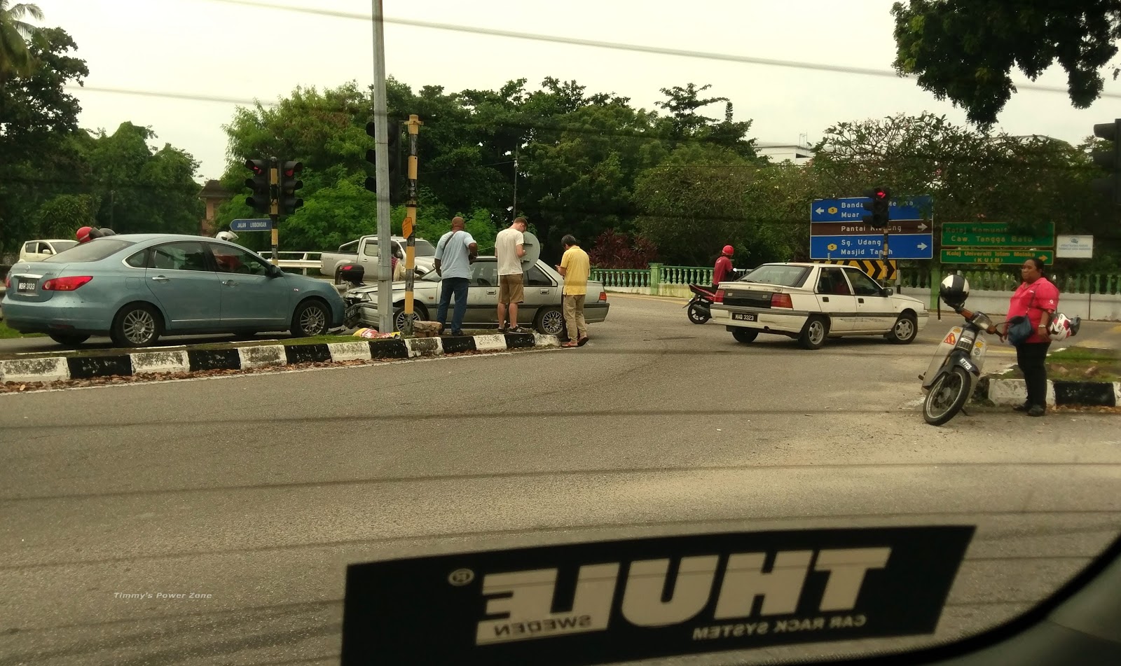 前年去馬來西亞出差,最後一天要去機場時,離開馬六甲市區時…就這麼剛好讓我碰到人生第一次的(汽車)車禍,我們在右轉的時候被直行車輛撞上,這台直行車輛是一台闖紅燈的Grab Car(類似Uber的叫車平台),因為右轉有專用號誌,我們的車速很緩慢的起步(30km左右)被撞個正著。