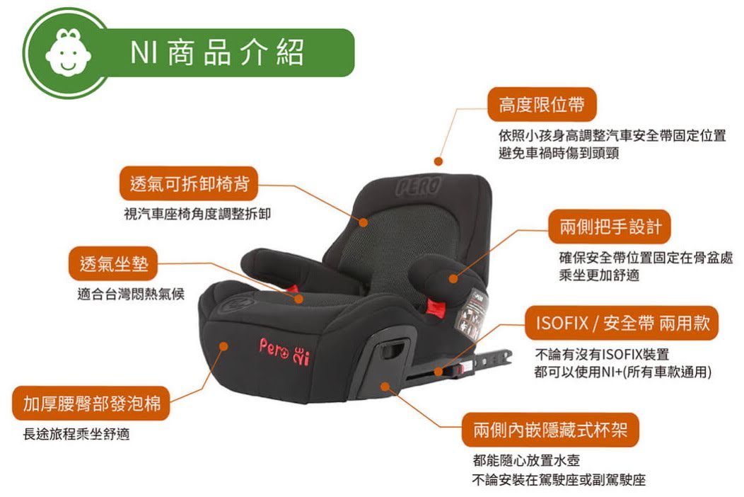 如果你也在觀望ISO-FIX增高墊的話,或許可以參考一下Pero這款NI增高墊喔