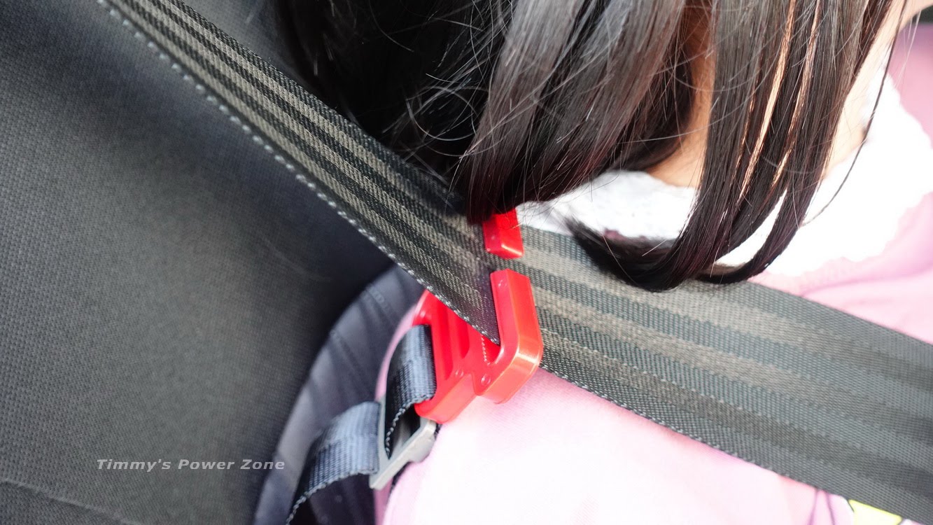↓至於「高度限位帶」也是增高墊必備的配備之一,避免安全帶卡在小孩脖子上,萬一真的有事故反而更危險。