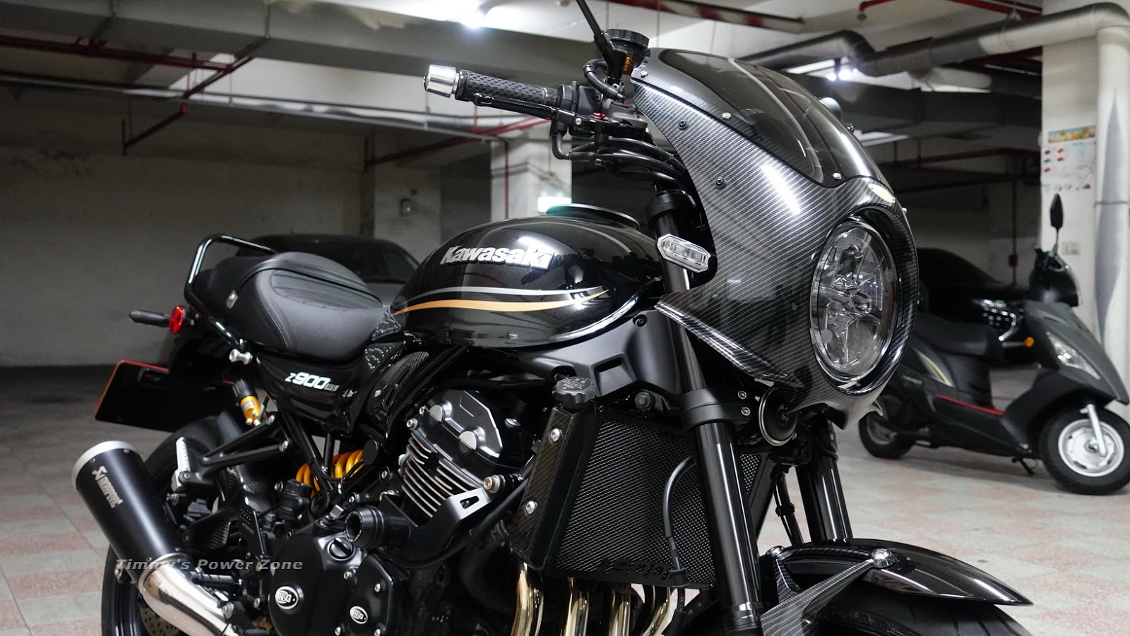 ↓側面大合照,注意看頭罩、土除支架的貼模還比水箱側邊飾版的正碳纖維還要亮~意想不到的效果啊