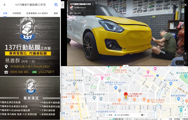 ↓網路上爬文,除了烤漆外,時下的貼模也是大家推薦的選項之一,我後來找到這家台中的137行動貼膜工作室,位在公益路跟大墩路旁邊,看起來比較多都是在貼汽車的