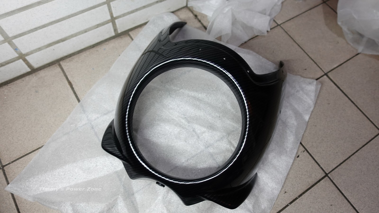 ↓頭罩的紋路效果~我貼的是亮面的碳纖維花色,實際質感雖不如真的碳纖維,但視覺效果也不差