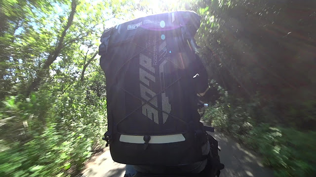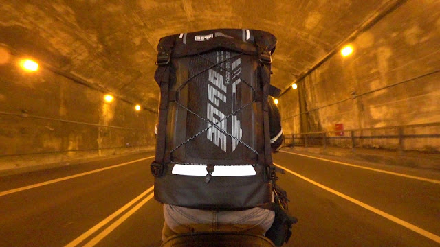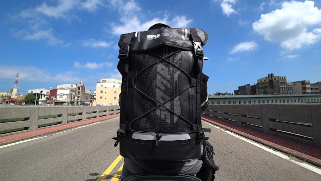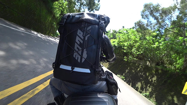 ↓我出來拍照這天算是輕裝上路,背包只有一半滿,大多是攝影機支架,這樣騎起來左右殺彎也很輕鬆