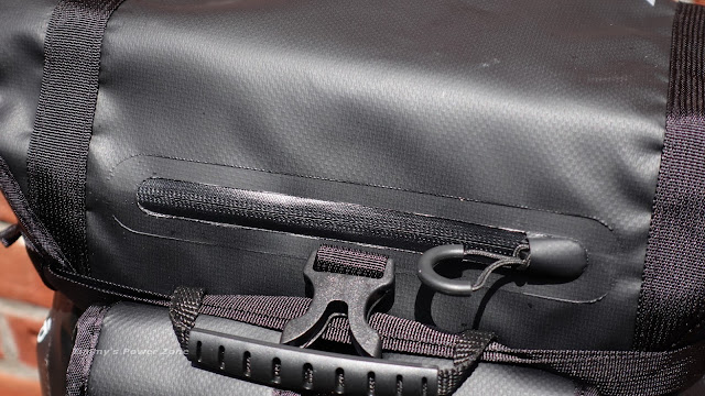 ↓PX-5 PRO這個系列的帽蓋設計是我最喜歡的部份,因為一般防水包的封口都要用捲的,對於日常使用其實開闔頗繁瑣,有了帽蓋的設計就方便多了,晴天不用把防水封口固定的過於紮實,只要帽蓋關上就可以出發了,省時很多。