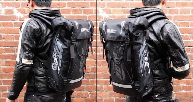 ↓(下圖是一代PRO) 一年多前PX-5 PRO的最大特色就是可以外掛安全帽網袋。當時的固定方式是4個插扣直接掛在背包4個位置。