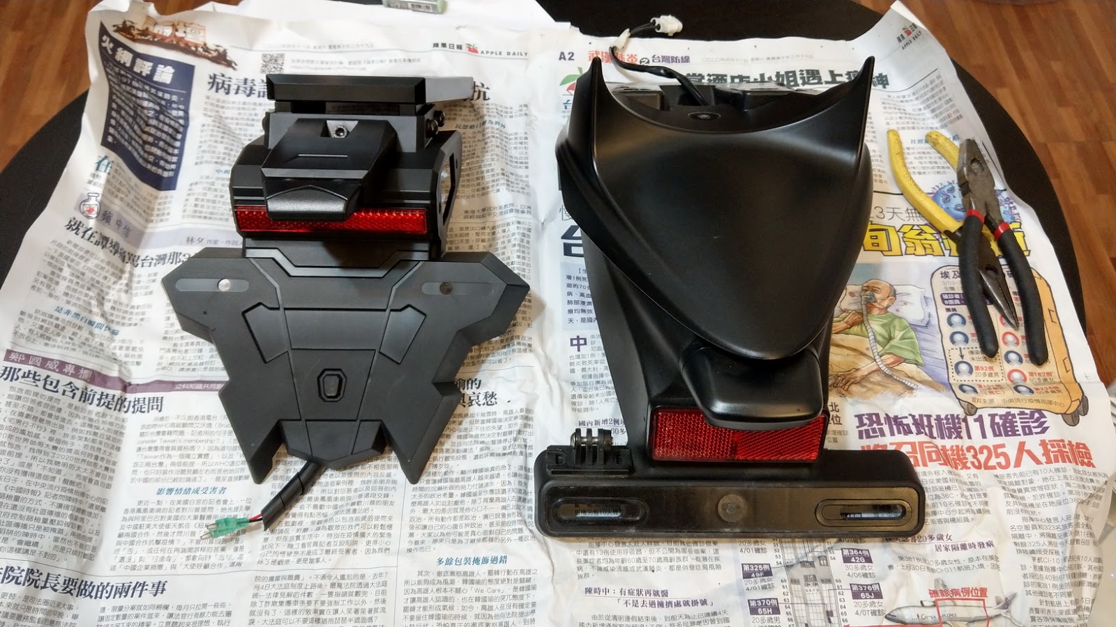 ↓下雨就更不用說了,背包、車殼、尾燈根本慘不忍睹,如果要載人的,想改短牌應該要認真思考這問題XD