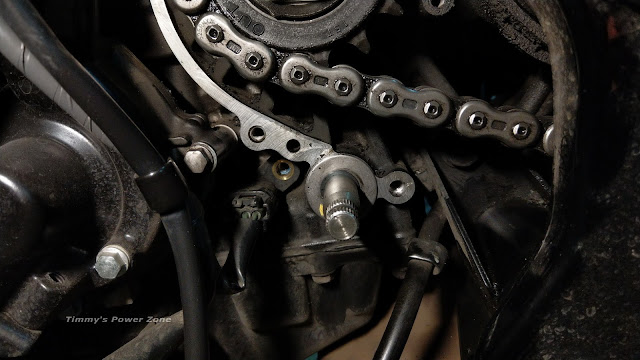 ↓因為我的Striker腳踏後移固定打檔桿的螺絲是在靠近前齒方向,必須先拆前齒蓋我才能鬆開螺絲,再拆下變速桿;前齒蓋只要4支螺絲就可以拆下。剛從嘉義雨戰回台中還沒洗車,車好髒...XD