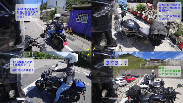 以前還在騎Z750s的時候,車子有裝後箱。後箱的實用性很高,只是裝了後箱多少還是會影響重心跟視覺。不過若是要載人旅行的話,後箱大概還是最佳的選擇;對於後座來說相對舒適與輕鬆。