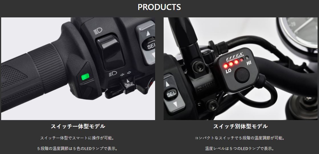 EFFEX這家是專門出一些騎士週邊的品牌,像我之前開箱的「矽膠座墊」、「旅行露營包」都是他們家的產品,我對這家的品牌印象非常好,東西品質、設計都不錯。加熱握把很多家都有出,像是Daytona、Kijima都有,不過因為EFFEX的握把套設計上可以讓115/120/130mm的握把都共用,加上金額不高,相對CP值高很多。當然外型我也覺得不錯看。