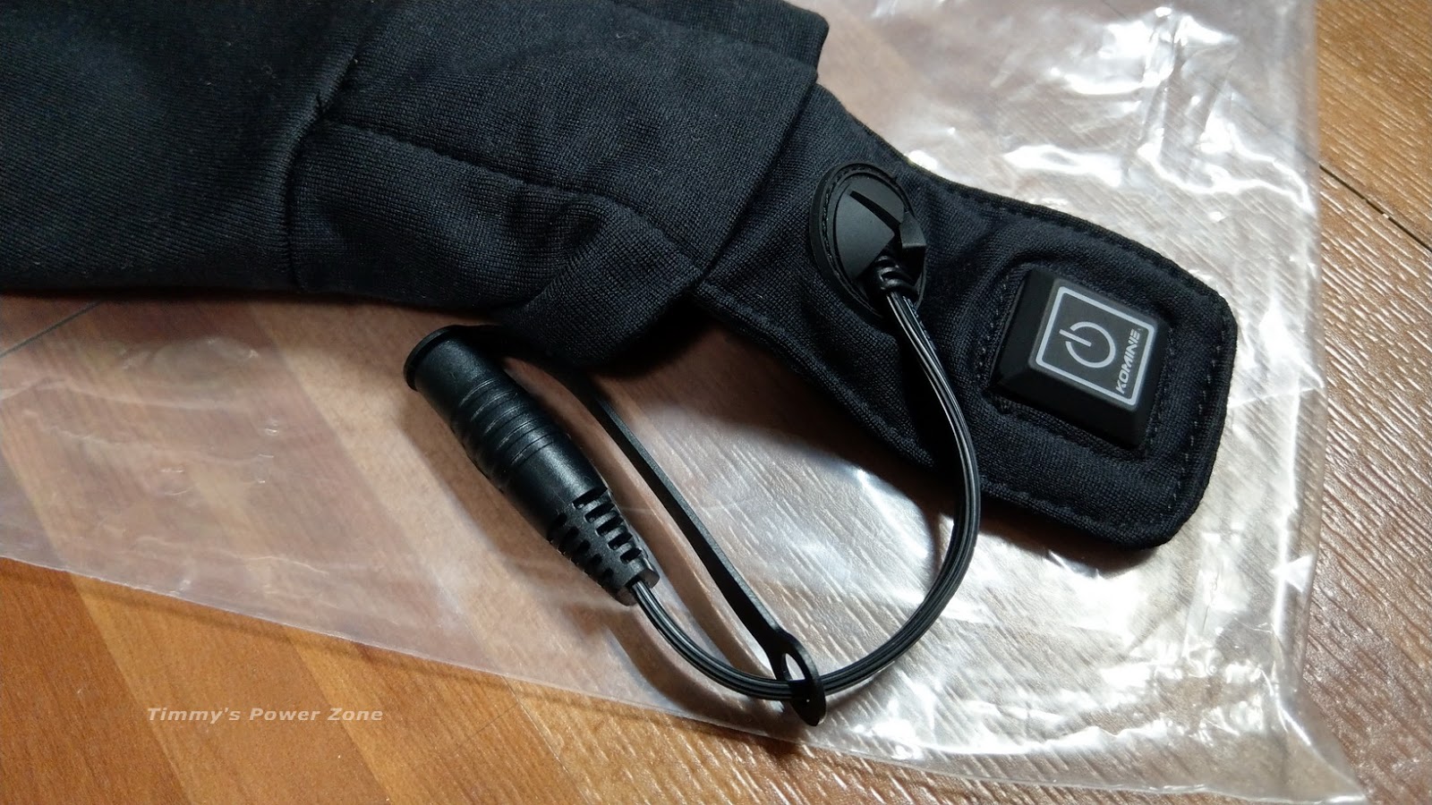 ↓手套上的開關跟電源線,電源線接頭上還有附塑膠軟蓋,不用的時候可蓋起來