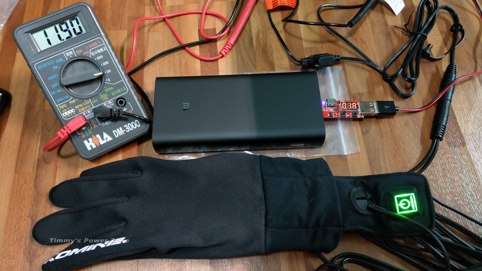 ↓手套通電啦~電壓送出11.9V (LOW檔)