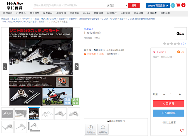 趁著這次手上Webike點數累積到一定金額,加上有生日禮金200元,嘿嘿...