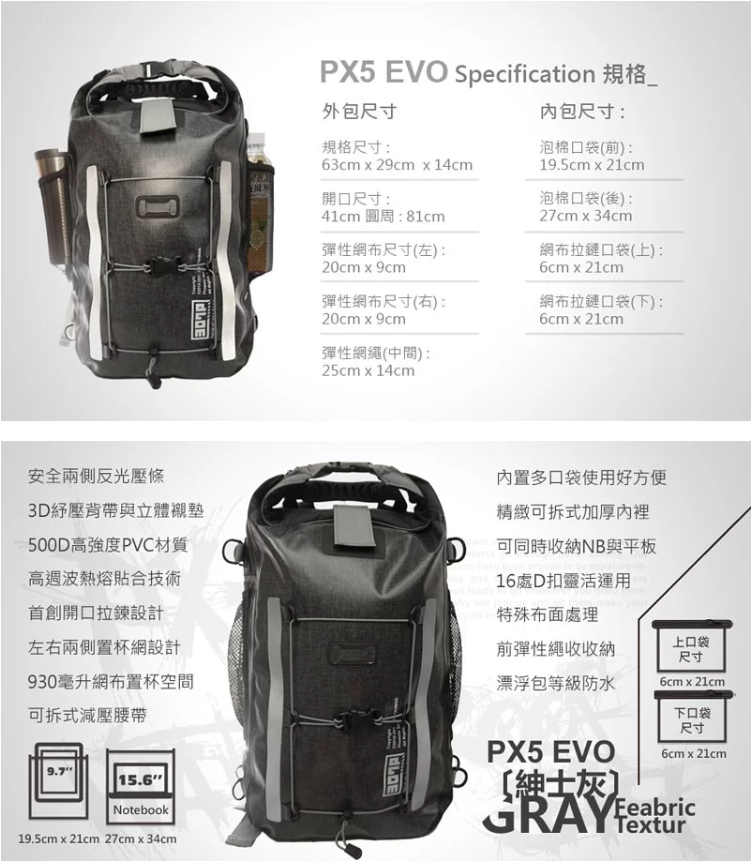 PX-5 Evolution 防水背包...咦?這不是先前就開箱開過的嗎?廠商詢問我是否有興趣試用的時候,還想說這不是之前有寄來過了?(見分享 / 307P PX-5 Evolution 防水運動雙肩背包-再進化!! )